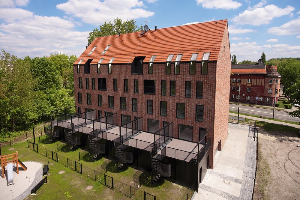 Przed projektantami osiedla Nowy Werdon w Rudzie Śląskiej stało nie lada wyzwanie, gdyż postawili oni sobie za cel stworzenie wyważonych budynków, które połączą w sobie cechy zabytkowe i nowoczesne. Zależało im na zachowaniu tradycji, gdyż wcześniej w owym miejscu stały tzw. „familioki”, należące do tradycyjnej, śląskiej zabudowy. Osiedle Nowy Werdon nawiązuje do nich poprzez m.in. kształt budynków i wykorzystanie czerwonej cegły do wykonania elewacji. Współczesnego charakteru dodają im okna dachowe FTU-V P2 i kolankowe Fakro, dzięki którym wnętrza budowli są dobrze doświetlone i mają nowoczesny, ekskluzywny wygląd.