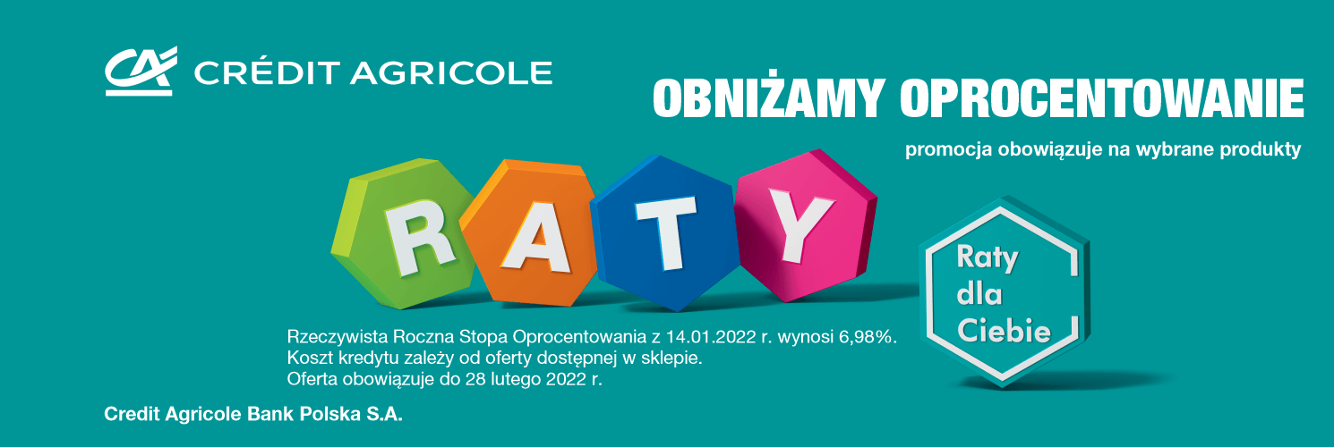 Dla wygody naszych Klientów wprowadziliśmy nową możliwość zapłaty, w postaci rat online! Skorzystaj z rat przez Internet wybierając formę płatności Credit Agricole Raty i otrzymaj nawet 20 000 zł kredytu na swoje zakupy.