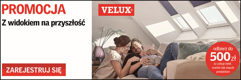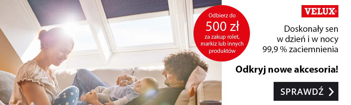 Rejestracja pozwala na odbiór kodu promocyjnego na rolety, markizy, inne produkty VELUX (listę produktów promocyjnych producent umieścił w regulaminie. Warto zajrzeć TUTAJ. Zapoznaj się tam również z zasadami przyznawanych zwrotów!
