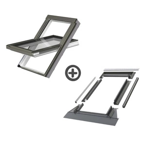 Zestaw okno dachowe FAKRO PTP-V U41 GBMX 78X118 3-szybowe + kołnierz EHV-AT RAL 7022
