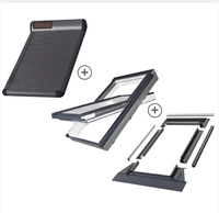 Zestaw okno dachowe FAKRO 3-szybowe drewniane + kołnierz + roleta solarna 78x140