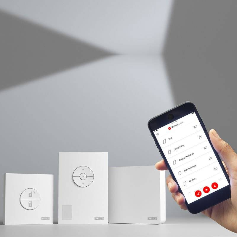 Produkty Velux, typu zewnętrzne osłony osłony okien dachowych, z łatwością regulują temperaturę na poddaszy, zwłaszcza w sezonie letnim. Natomiast dzięki systemowi VELUX ACTIVE możemy kierować ich działaniem i temperaturą wnętrza, przy użyciu smartfona. A to wszystko dzięki umieszczonym w mieszkaniu czujnikom, które poprzez bramkę, łączą się z systemem. Jak już wcześniej wspomniano, rozwiązanie to korzysta również z danych pobieranych na bieżąco ze stacji pogodowych, a co za tym idzie, jest w stanie zabezpieczyć nasz dobytek przed nagłymi zmianami pogodowymi. Nie musimy się więc już martwić otwartym oknem w czasie naszej nieobecności.