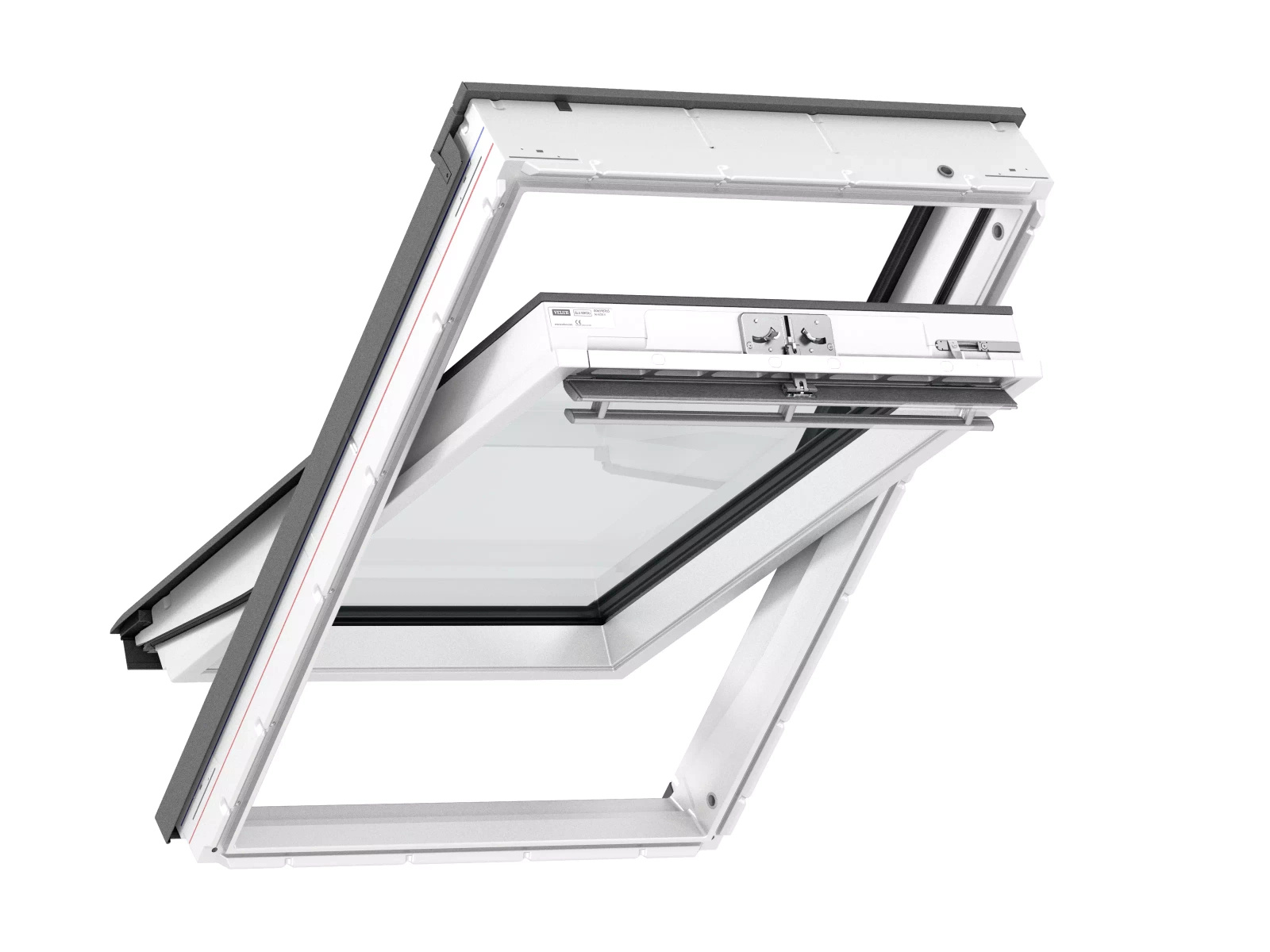 Energooszczędne okno dachowe z górnym systemem otwierania. Drewniany rdzeń został pokryty poliuretanem, dzięki czemu profile okienne i ościeżnica wykazują dużą odporność na wilgoć. Pakiet trzyszybowy skutecznie chroni przed stratami ciepła i podnosi efektywność energetyczną budynku. Zewnętrzna szyba jest hartowana. Okno GLU zawiera nawiewnik z wymiennym filtrem powietrza, co umożliwia stały dopływ świeżego powietrza na poddasze. Białe profile wewnętrzne optycznie rozjaśniają i powiększają wnętrze. Oblachowanie zewnętrzne ma ciemnoszary kolor (RAL 7043).