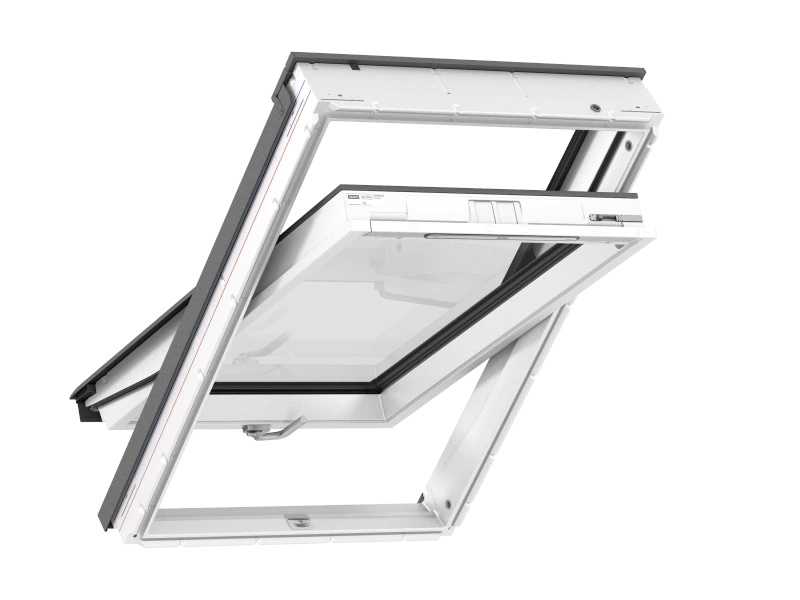 Energooszczędne okno dachowe z dolnym systemem otwierania. Drewniany rdzeń został pokryty poliuretanem, dzięki czemu profile okienne i ościeżnica wykazują dużą odporność na wilgoć. Pakiet trzyszybowy skutecznie chroni przed stratami ciepła i podnosi efektywność energetyczną budynku. Zewnętrzna szyba jest hartowana. Okno GLU zawiera nawiewnik z wymiennym filtrem powietrza, co umożliwia stały dopływ świeżego powietrza na poddasze. Białe profile wewnętrzne optycznie rozjaśniają i powiększają wnętrze. Oblachowanie zewnętrzne ma ciemnoszary kolor (RAL 7043).
