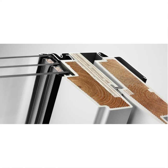 - Rdzeń okna wykonany z drewna sosnowego modyfikowanego termicznie, pokryty poliuretanem metodą ciśnieniową.