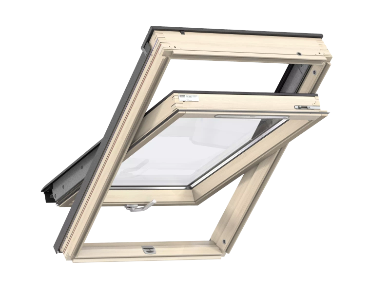 Otwierane od dołu obrotowe okno dachowe VELUX GZL 1051B zapewnia wszystkie kluczowe zalety i funkcje produktów marki VELUX. Otwieranie od dołu ułatwia obsługę okna, nawet jeśli umieszczone jest wysoko, np. ze względu na ścianę kolankową.
