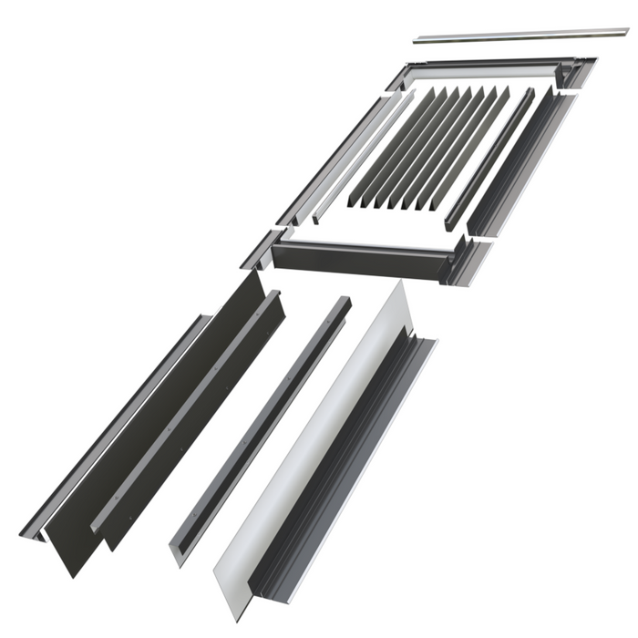 Kołnierze przeznaczone są do okien kolankowych B__. Umożliwiają szczelne połączenie okna dachowego dowolnej konstrukcji montowanego w połaci dachu z oknem kolankowym osadzonym w ścianie pionowej.
