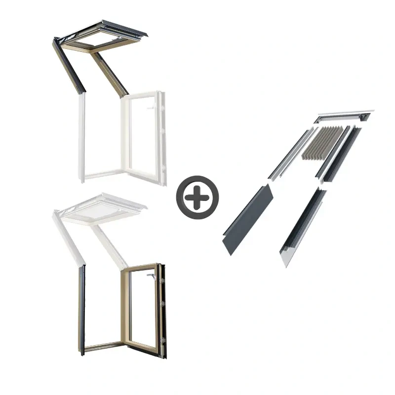 - Główne elementy: górny element, cztery elementy boczne, pianka docieplająca, elementy okucia okapu, profile kryjące boki ościeżnicy (PKBO).