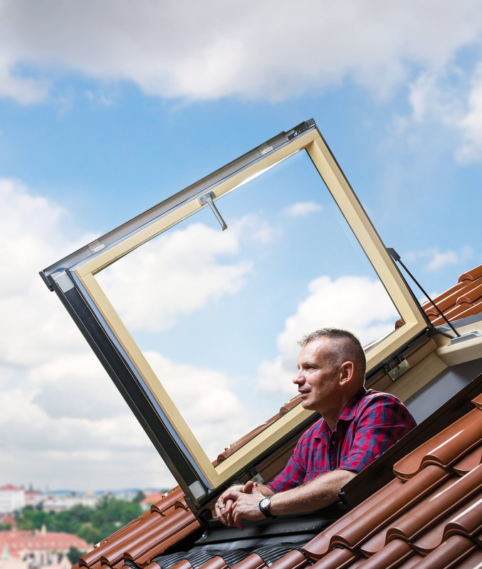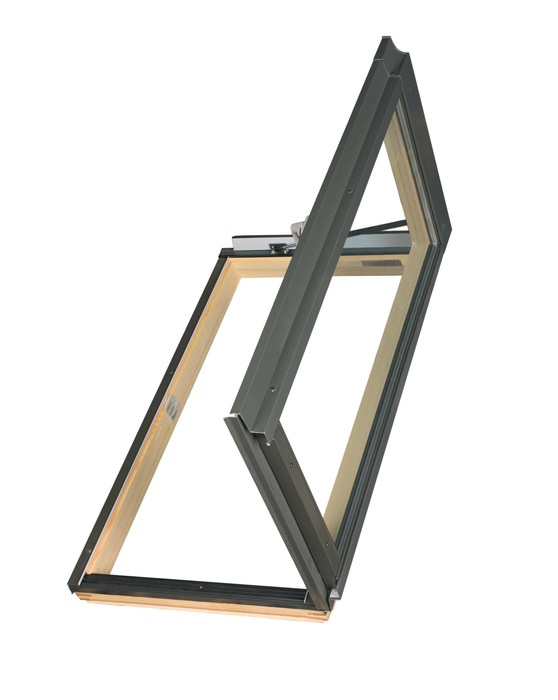 Okno wyłazowe FWP łączy w sobie zalety okna dachowego oraz wyłazu dachowego. Posiada konstrukcję klapową i otwierane jest na bok. Po odblokowaniu klamki, skrzydło otwiera się do kąta 90°. Duży wymiar okna wyłazowego w świetle umożliwia łatwe i bezpieczne wyjście na dach. Zamontowany w górnej części wyłazu siłownik gazowy ułatwia otwieranie, stabilnie utrzymuje otwarte skrzydło oraz chroni je przed przypadkowym zatrzaśnięciem.