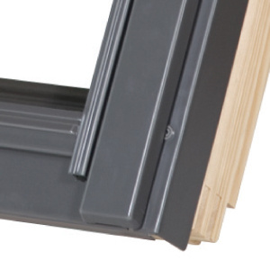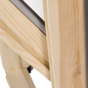 Dwuszybowe okno dachowe z kołnierzem w zestawie. Wyprodukowane z naturalnego drewna sosnowego pochodzącego z odpowiedzialnie zarządzanej gospodarki leśnej. Klamka z funkcją mikrouchylenia jest wygodna w obsłudze, zamontowano ją w dolnej części skrzydła. Produkt został wyposażony w solidną ościeżnicę i hartowaną szybę zewnętrzną odporną na uderzenia wiatru. Kołnierz TFX pozwala na szczelny montaż okna w pokryciu falistym, odprowadza wodę deszczową i sprawdza się w trudnych warunkach atmosferycznych.