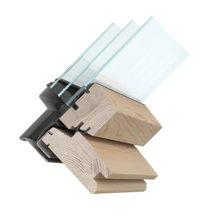 Obrotowe okno dachowe wyposażone w energooszczędny pakiet trzyszybowy. Wyróżnia się niskim współczynnikiem przenikania ciepła, który wynosi 1,1 W/m2K. Solidna rama została wykonana z naturalnego drewna sosnowego pozyskiwanego ze zrównoważonej gospodarki leśnej. Zewnętrzna szyba jest hartowana. Użytkownicy mają do dyspozycji dwie pozycje mikrouchylenia, co pozwala na wygodną wentylację wnętrz. Klamka została umieszczona w dolnej części skrzydła. Profile wewnętrzne okna Rooflite+ Trio Pine są drewniane, a zewnętrzne oblachowanie ma szary kolor (RAL 7043).