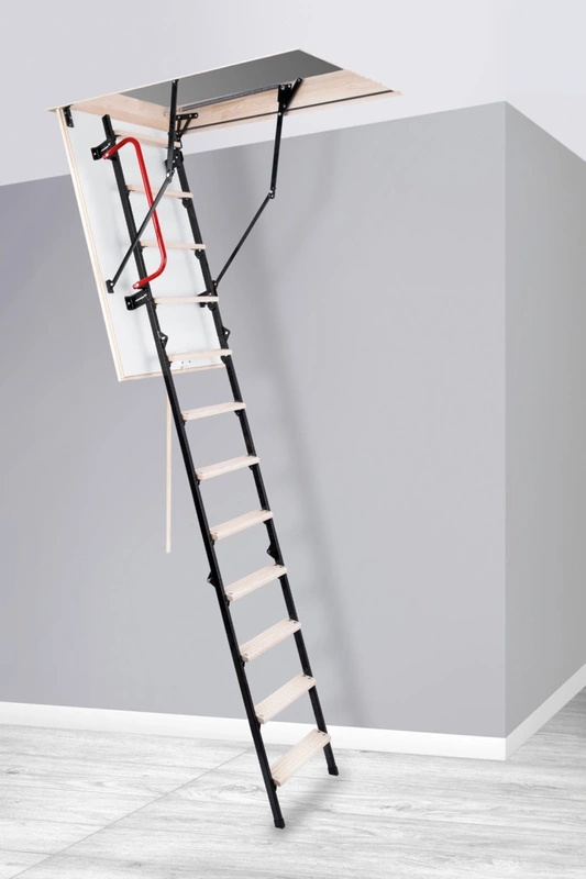 Schody strychowe Stallux Termo są kompaktowe i funkcjonalne, odpowiednie do przestrzeni o ograniczonym metrażu. Zostały wyposażone w antypoślizgowe stopki, które zapewniają optymalną przyczepność drabiny do podłoża i zapobiegają uszkodzeniom podłogi. Metalowo-drewniana konstrukcja wyróżnia się dużą trwałością i stabilnością. Klapa zawiera pojedyncze uszczelnienie i opatentowany zamek samozatrzaskowy, który gwarantuje jej łatwe, szczelne zamknięcie. Schody Stallux Termo przeznaczone są do kondygnacji o wysokości 280 cm, na ocieplone poddasze, które nie wymaga dodatkowej termoizolacji.