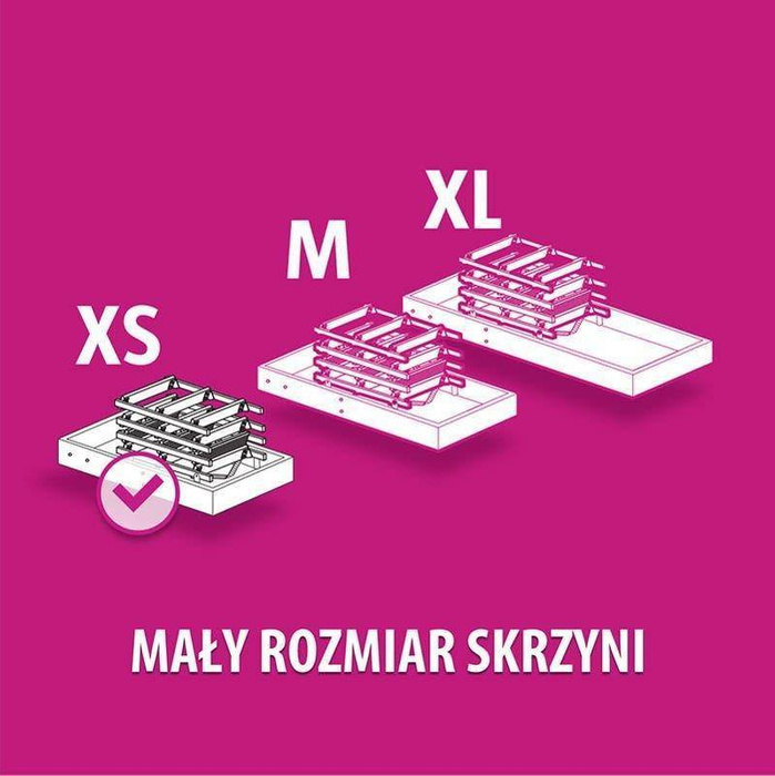 - Zestaw montażowy, system pozwalający na opuszczenie skrzyni na optymalną wysokość i przykręcenie jej do stropu.