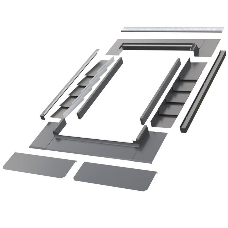 - Uniwersalność – kołnierz do pokryć łuskowych zapewnia szczelne połączenie okien dachowych z pokryciami takimi jak gonty bitumiczne czy łupki o łącznej grubości do 10 mm (2 warstwy po 5 mm). Przeznaczony do montażu pojedynczego okna w dachu. Dostępny również w wersji modułowej, pozwalającej na tworzenie zespoleń poziomych, pionowych i blokowych.
