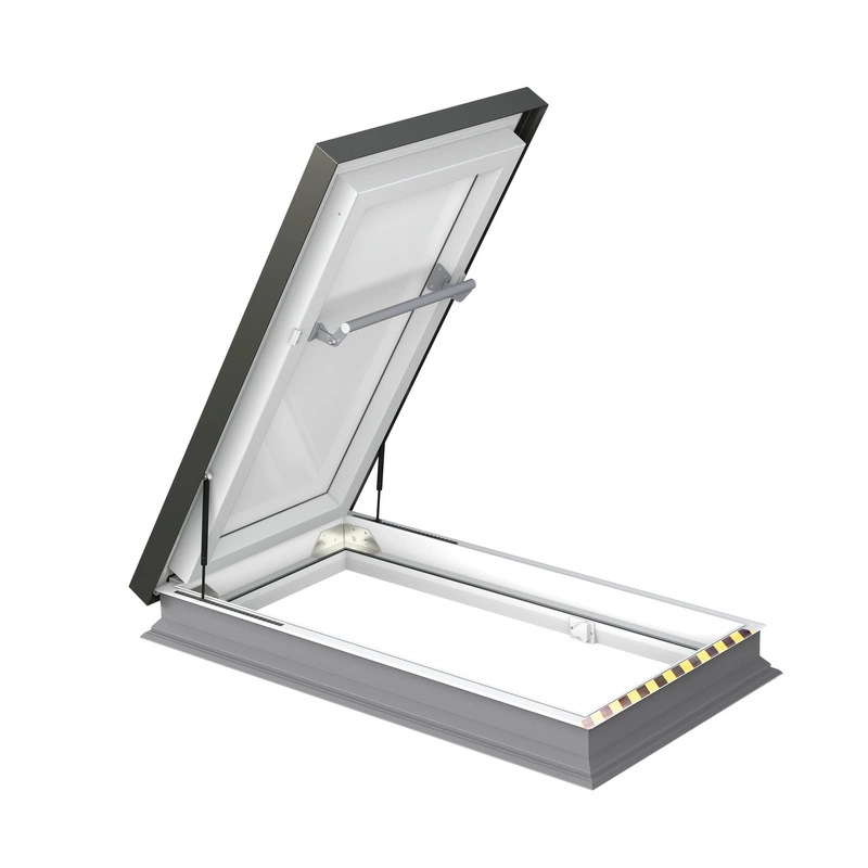 Konstrukcja oraz rozmiary wyłazu DRL pozwalają na połączenie go ze schodami strychowymi tworząc kompleksowe rozwiązanie w zakresie dostępu do dachu płaskiego.