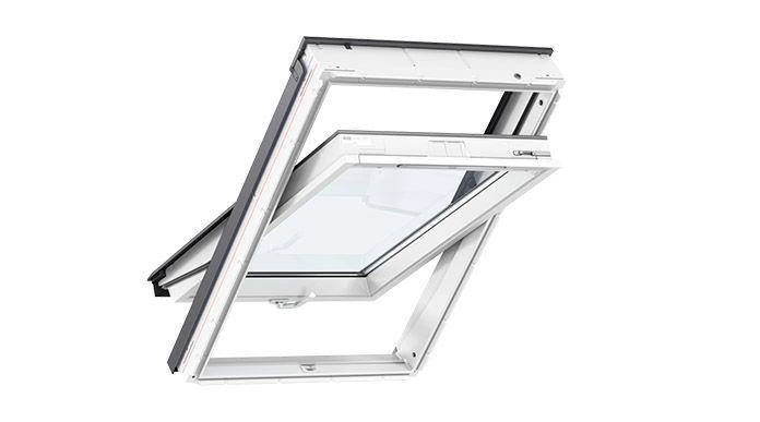 Energooszczędne okno dachowe z górnym systemem otwierania. Drewniany rdzeń został pokryty poliuretanem, dzięki czemu profile okienne i ościeżnica wykazują dużą odporność na wilgoć. Pakiet trzyszybowy skutecznie chroni przed stratami ciepła i podnosi efektywność energetyczną budynku. Zewnętrzna szyba jest hartowana. Okno GLU zawiera nawiewnik z wymiennym filtrem powietrza, co umożliwia stały dopływ świeżego powietrza na poddasze. Białe profile wewnętrzne optycznie rozjaśniają i powiększają wnętrze. Oblachowanie zewnętrzne ma ciemnoszary kolor (RAL 7043).