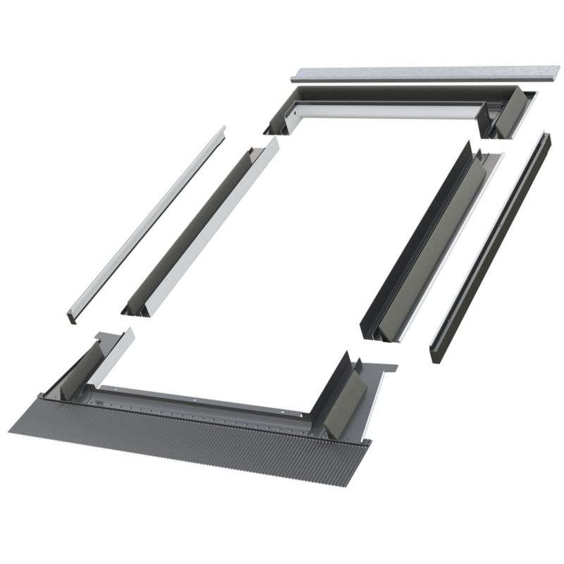 Kołnierz uszczelniający FALISTY EZV-P FAKRO 114x140 składa się z czterech podstawowych części: dolnego elementu i górnego elementu, elementów bocznych oraz pasków z blachy do montażu. Część dolna kołnierza zakończona jest elastycznym fartuchem, posiada podklejoną od spodu masę plastyczną pozwalającą na przyklejenie kołnierza do pokrycia dachowego, co zapewnia niezwykłą szczelność połączenia.