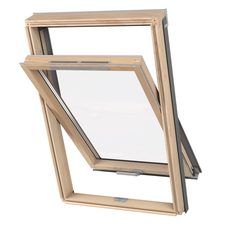 Okno dachowe BETTER ENERGY to nowoczesne, energooszczędne okno dachowe z trzyszybowym pakietem dwukomorowym i centralną osią obrotu.