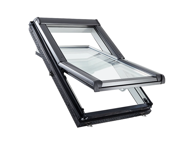Designo R4 to klasyczne okno dachowe z osią obrotu w połowie wysokości ramy. Jest to najbardziej popularny sposób otwierania okien dachowych na poddaszach. Okno Roto swoją wyjątkowość zawdzięcza niekonwencjonalnemu wzornictwu oblachowania zewnętrznego i oryginalnej kolorystyce antracyt metallic. Ponadto klamka umieszczona na dole ramy okiennej zapewnia łatwy i wygodny sposób ich obsługi.