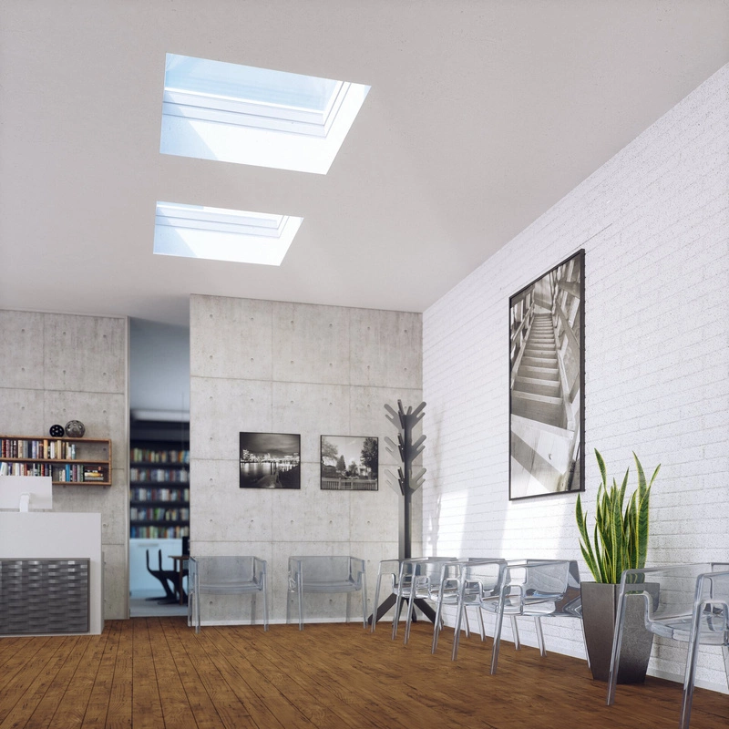 - szeroka gama rozmiarów dostosowana została do standardów naświetli płaskich dachów, dzięki temu możliwa jest również wymiana istniejącego naświetla na nowe okno,