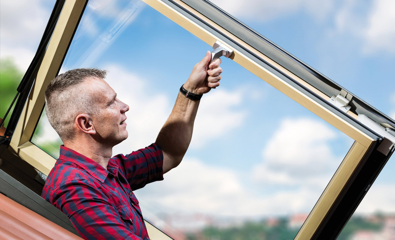 Okno wyłazowe FWP łączy w sobie zalety okna dachowego oraz wyłazu dachowego. Posiada konstrukcję klapową i otwierane jest na bok. Po odblokowaniu klamki, skrzydło otwiera się do kąta 90°. Duży wymiar okna wyłazowego w świetle umożliwia łatwe i bezpieczne wyjście na dach. Zamontowany w górnej części wyłazu siłownik gazowy ułatwia otwieranie, stabilnie utrzymuje otwarte skrzydło oraz chroni je przed przypadkowym zatrzaśnięciem.