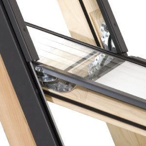 Obrotowe okno dachowe z kołnierzem w zestawie. Wyprodukowane z certyfikowanego drewna sosnowego, powleczonego lakierem o bezpiecznym składzie. Wyposażone w pakiet dwuszybowy i ergonomiczną klamkę z funkcją mikrouchylenia. Dwa systemy wentylacji zapewniają możliwość regulacji dopływu świeżego powietrza. Zewnętrzna szyba jest hartowana, wyróżnia się dużą odpornością na uszkodzenia. W pakiecie kołnierz TFX do pokryć falistych. Okno przeznaczone do montażu w dachach o kącie nachylenia od 15 do 90 stopni.