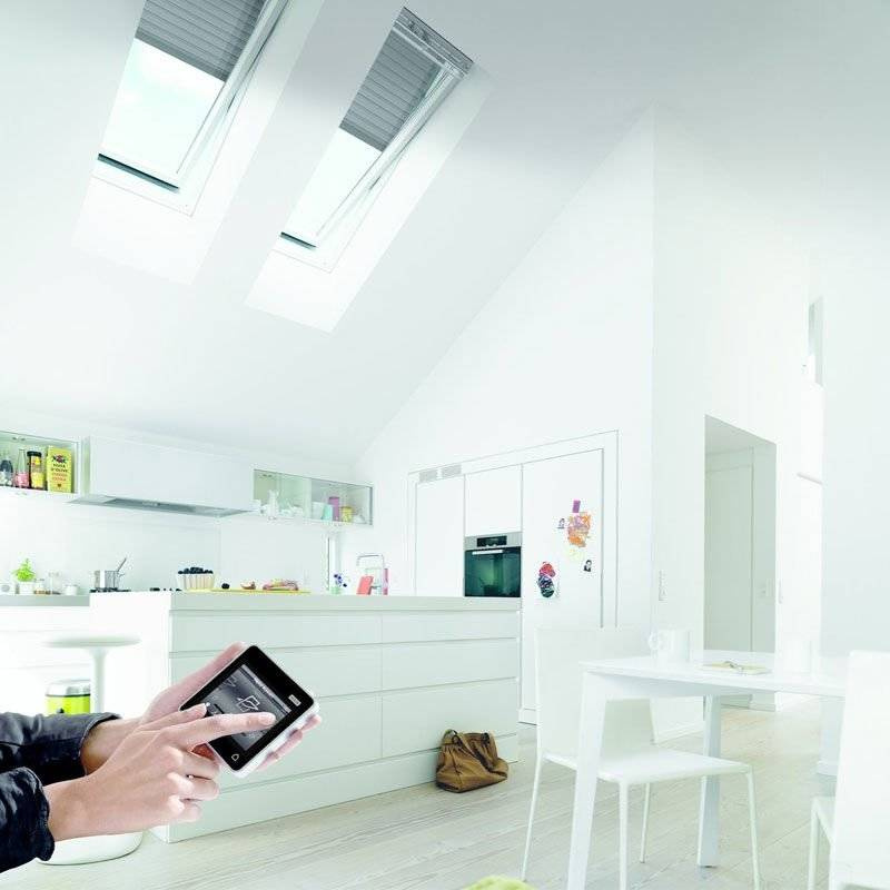 • Produkt kompatybilny z VELUX ACTIVE with NETATMO zapewniający lepszy mikroklimat we wnętrzach i automatyczną ochronę przed ciepłem. Zdalne sterowanie za pomocą smartfona lub głosu.