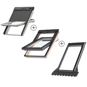 Zestaw okno dachowe VELUX 3-szybowe + kołnierz + roleta solarna 78x118
