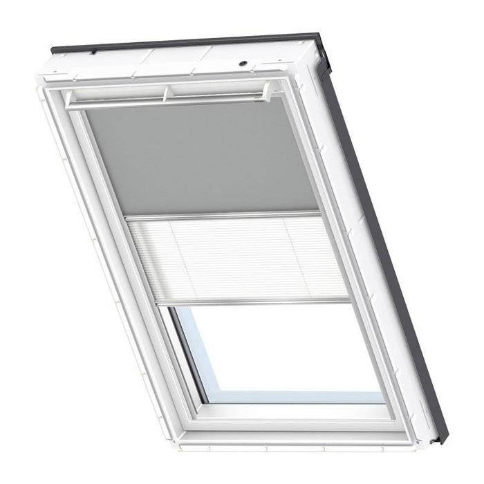 Roleta zaciemniająca VELUX DFD jest produktem typu „dwa w jednym”. Oznacza to, że łączy w sobie atuty rolety zaciemniającej i plisowanej. Doskonale sprawdzi się w sypialni lub w salonie, gdzie istotna jest kontrola światła i natężenia ciepła. Rozwiązanie to pozwala dobrze odpocząć zarówno w dzień, jak i w nocy.