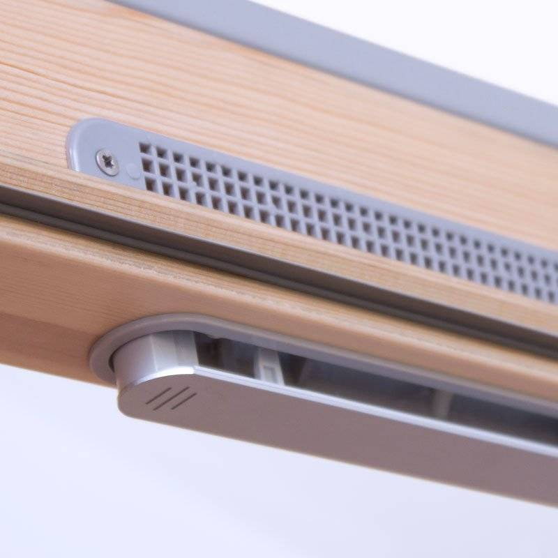 Drewno sosnowe wykorzystywane w produkcji okna dachowego RoofLITE+ Slim Vent posiada certyfikat FSC i pochodzi ze zrównoważonych lasów. Podwójne oszklenie (wypełnione argonem) zastosowane w oknie ma wartość współczynnika Ug 1,0 W /m2K, a także powłokę o niskiej emisyjności i hartowanej szybie zewnętrznej. Dzięki tym cechom utraty ciepła w zimie i nadmierne przegrzewanie latem są ograniczone. Wąska, wyprofilowana ościeżnica nadaję wnętrzu nowoczesnego charakteru. Uchwyt wykonany jest z odlewanego cynku i blokuje okno w trzech pozycjach, dwie z nich umożliwiają pasywną wentylację.