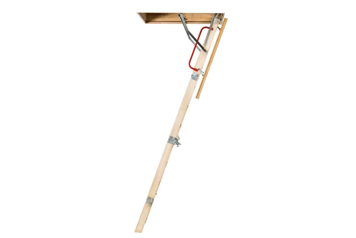 Schody strychowe LWK Plus to model składany, wykonany z wysokiej jakości drewna sosnowego. Charakteryzuje się niskim współczynnikiem przenikania ciepła wynoszącym 1,1 Uw, co oznacza wysokie właściwości termoizolacyjne oraz duże oszczędności energetyczne. Drabina w tym modelu składa się z 4 segmentów. Schody te posiadają klapę termoizolacyjną w kolorze białym wyposażoną w zamek. Skrzynia schodów wykonana jest z drewna sosnowego i ma wysokość 14 cm. Posiada uszczelkę obwodową. Schody Fakro LWK Plus bez problemu zmieszczą się nawet w ciasnych pomieszczeniach poddasza. Są kompletnie zmontowane, przygotowane do szybkiego montażu. W zestawie znajduje się poręcz ułatwiająca użytkowanie schodów oraz drążek do otwierania klapy. Schody 4-segmentowe nie posiadają stopek antypoślizgowych w zestawie (dostępne jedynie w wersji 3-segmentowej).