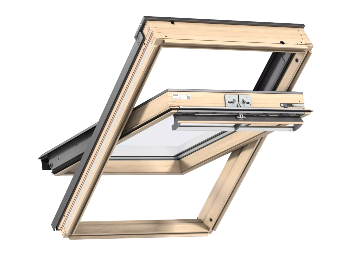 Oryginalne, otwierane od góry obrotowe okno dachowe VELUX (GGL) jest łatwe w obsłudze i można je swobodnie umieścić nad meblami. Dzięki innowacyjnemu uchwytowi górnemu możesz zainstalować okna niżej i zyskać doskonały widok zarówno w pozycji siedzącej, jak i stojącej.