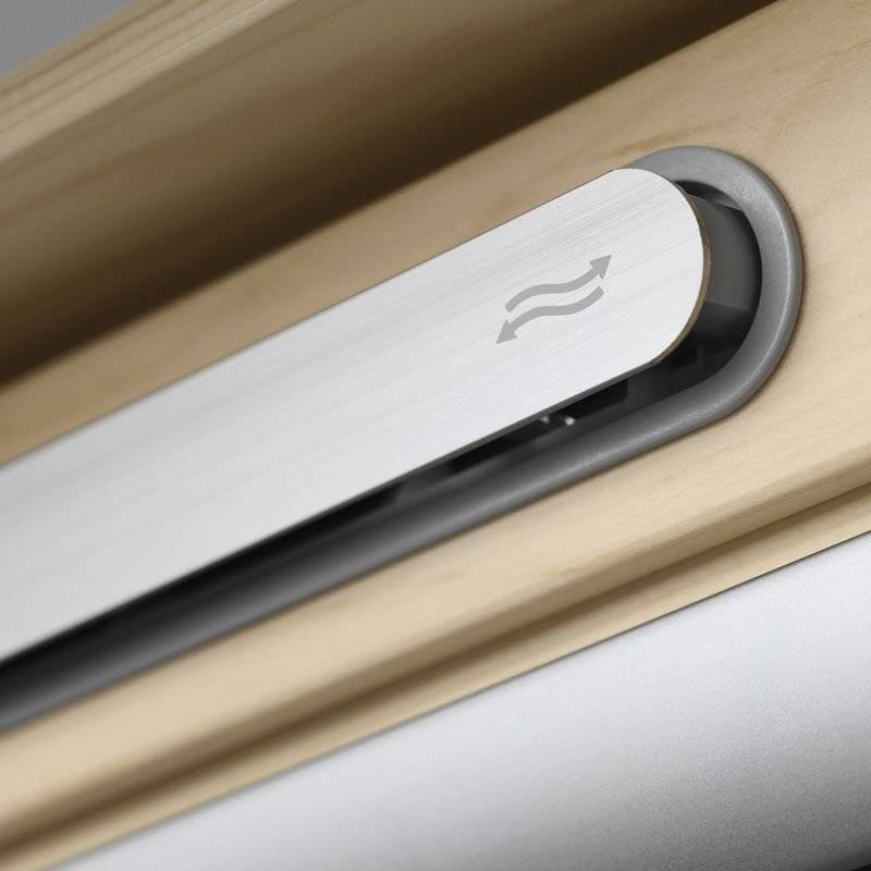 Otwierane od dołu obrotowe okno dachowe VELUX GZL 1051B zapewnia wszystkie kluczowe zalety i funkcje produktów marki VELUX. Otwieranie od dołu ułatwia obsługę okna, nawet jeśli umieszczone jest wysoko, np. ze względu na ścianę kolankową.