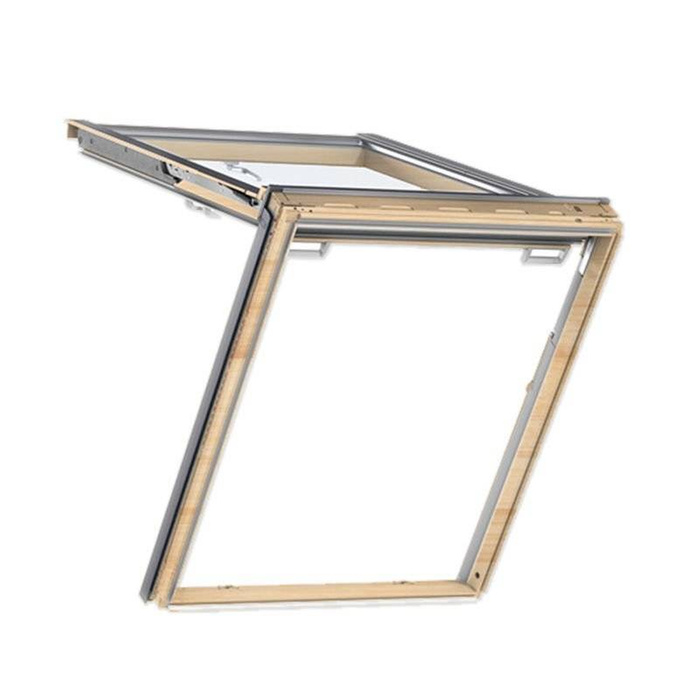 Ewakuacyjne okno klapowo-obrotowe VELUX otwiera się na zewnątrz pod kątem do 45⁰. W sytuacji awaryjnej skrzydło okienne można otworzyć pod kątem 67⁰, popychając je ku górze. Cały otwór okienny zapewnia teraz możliwość szybkiego i łatwego wyjścia oraz wejścia. Okno dachowe jest obsługiwane od dołu za pomocą uchwytu na dolnym skrzydle. Aby w pełni korzystać z funkcji otwierania w trybie klapowym, zalecamy wysokość montażu, która pozwala uzyskać wyraźny widok na zewnątrz zarówno z pozycji stojącej, jak i siedzącej.